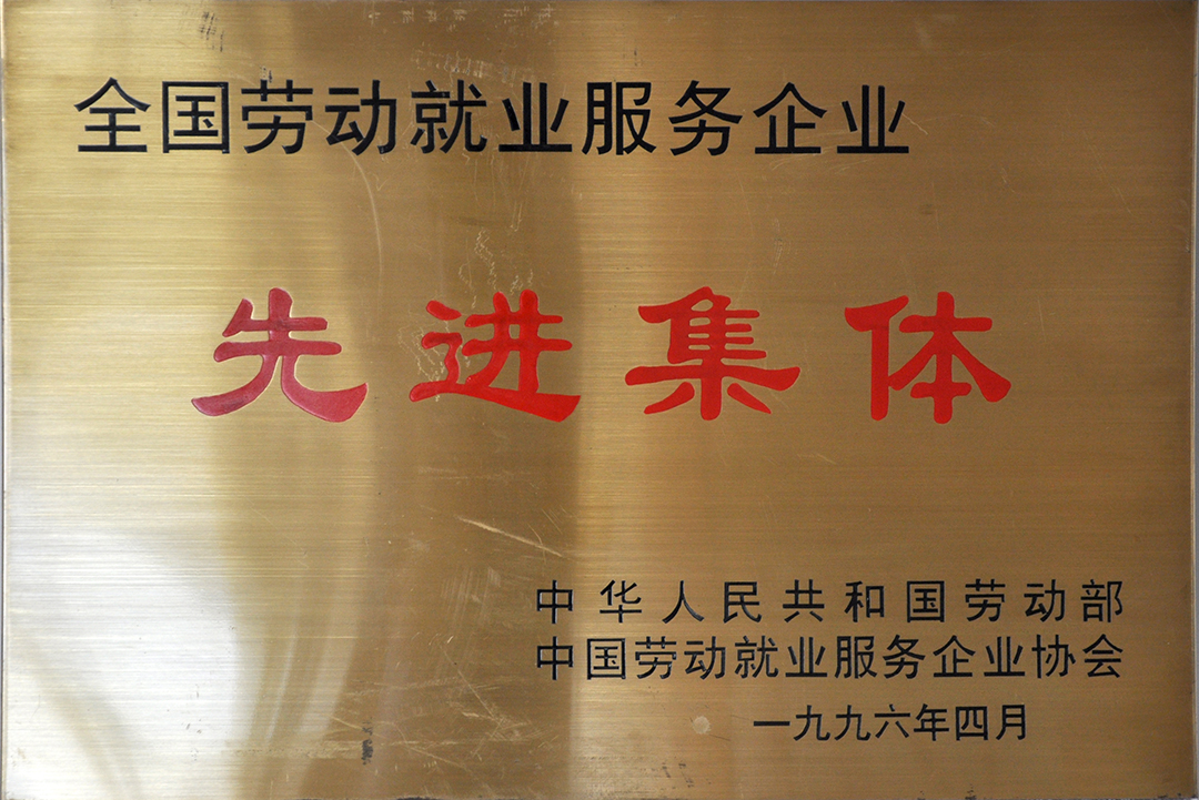 1996年勞動(dòng)部頒發(fā)全國勞動(dòng)就業(yè)服務(wù)單位先進(jìn)集體