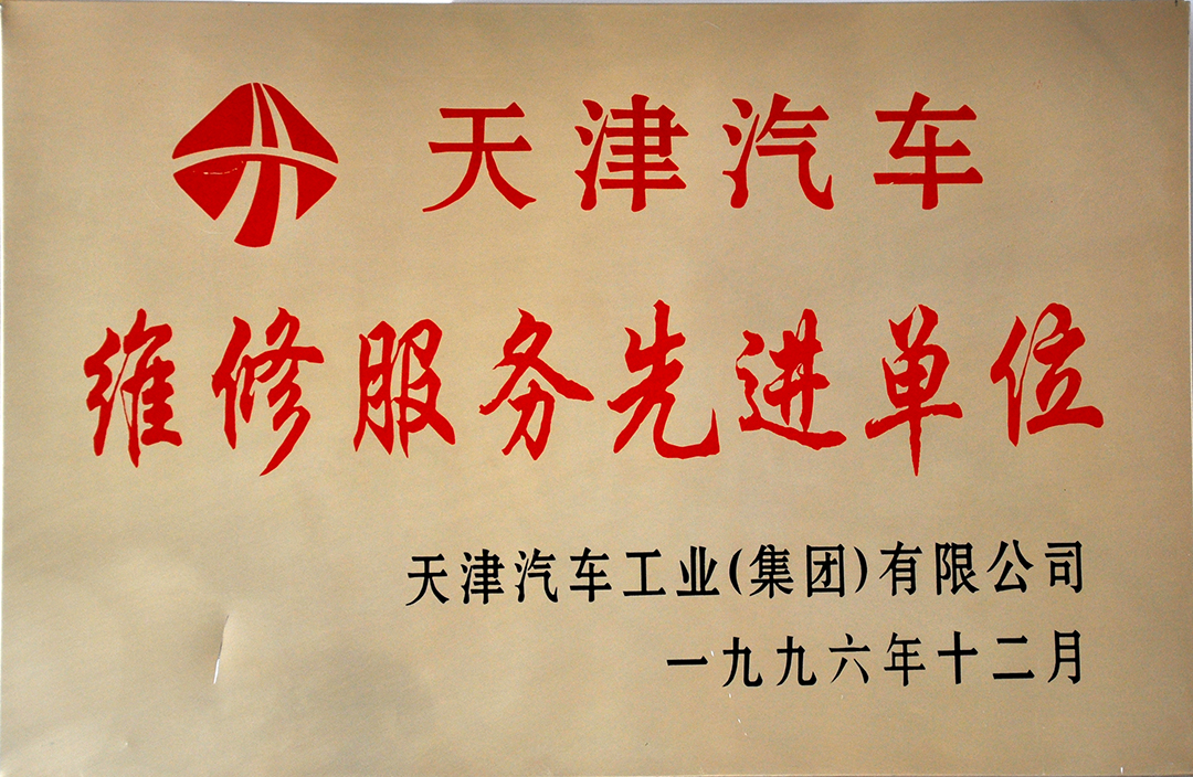 1996年天津汽車(chē)工業(yè)有限公司頒發(fā)維修服務(wù)先進(jìn)單位