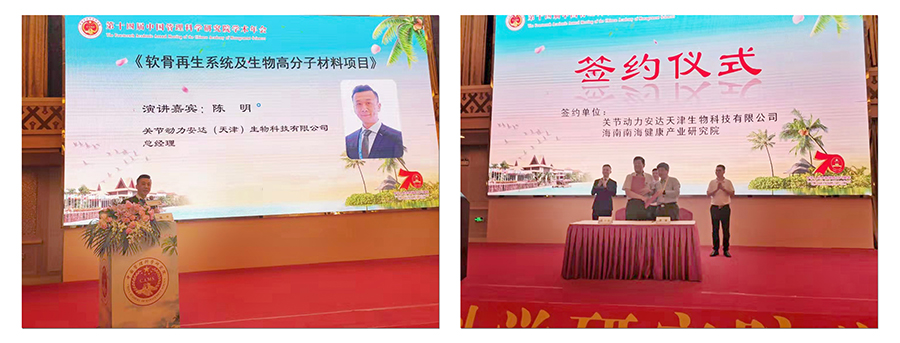 隨后安達集團黨委書(shū)記董事長(cháng)崔洪金與海南南海健康產(chǎn)業(yè)研究院院長(cháng)曾渝共同完成戰略合作簽約儀式,“軟骨再生系統”落地博鰲樂(lè )城國際醫療旅游先行區項目進(jìn)行戰略合作,并通力打造具有規?;?,效益化,品牌化的高端醫療服務(wù)綜合運營(yíng)平臺。該項目填補了國內運動(dòng)醫學(xué)軟骨修復材料的空白,為廣大關(guān)節疾病患者帶來(lái)了福音,旨在推進(jìn)全國大健康產(chǎn)業(yè)的可持續發(fā)展。