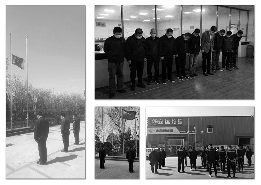 2020年4月3日,國務(wù)院辦公廳印發(fā)《關(guān)于為新冠肺炎疫情犧牲烈士和逝世同胞舉行全國性哀悼活動(dòng)的通知》。國務(wù)院決定,2020年4月4日舉行全國性哀悼活動(dòng)。在此期間,安達集團及各分公司,響應國家號召,4月4日10時(shí)起,在各廠(chǎng)院前廣場(chǎng)舉行降半旗儀式,共悼逝者,寄托哀思,全體在職人員默哀3分鐘。