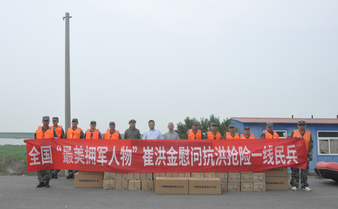 崔洪金現場(chǎng)了解民兵生活、排險情況,向堅守河堤的民兵表示崇高敬意,并為民兵送上夏季訓練服裝和防暑降溫慰問(wèn)品,對他們發(fā)揚“聞‘汛’而動(dòng)、聽(tīng)令而行、勇于奉獻”的精神高度贊揚。