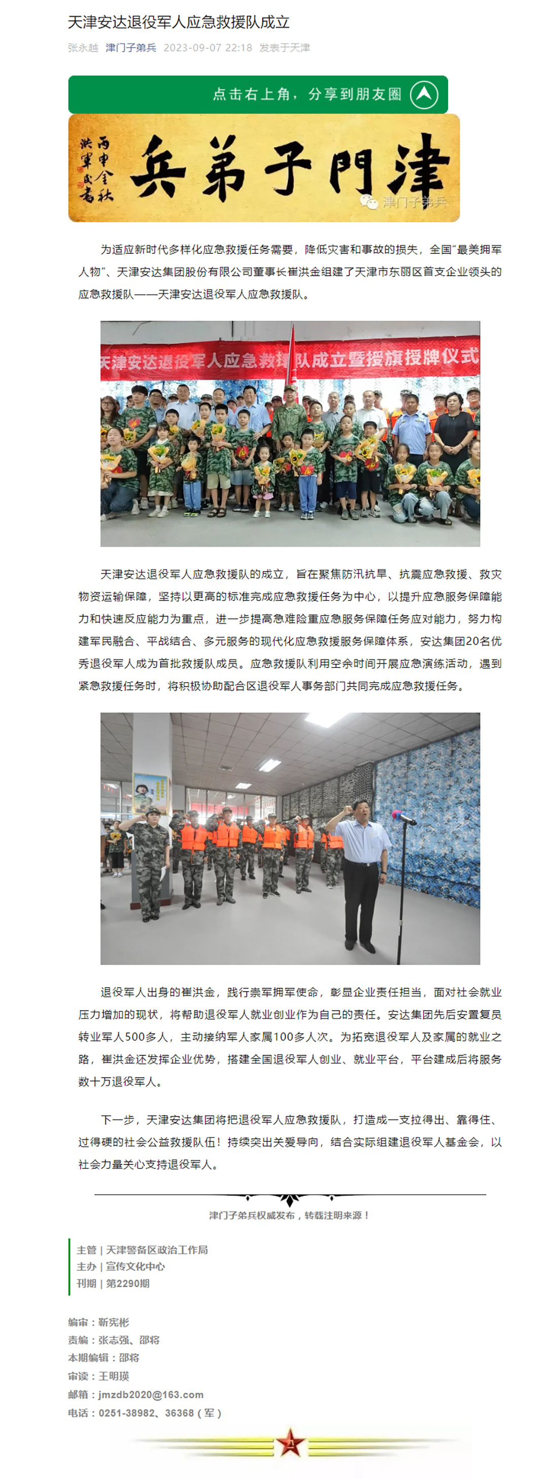 "津門(mén)子弟兵”宣傳安達集團退役軍人應急救援隊成立