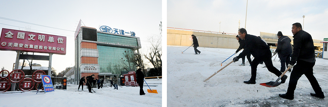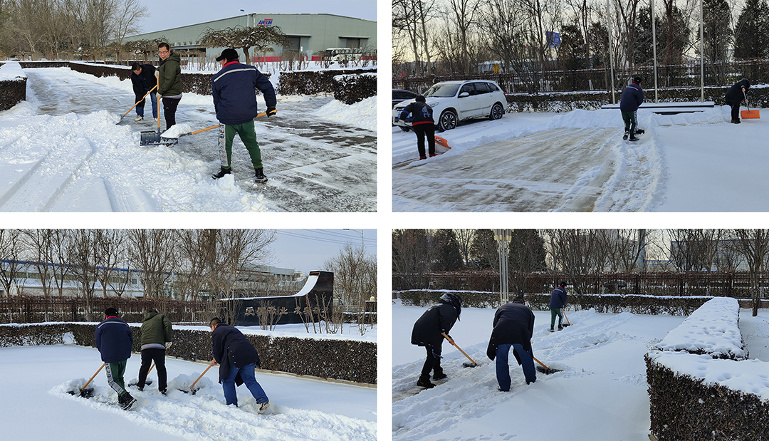 12月14日,降雪覆蓋了津城大地。翩然而至的冬雪為城市平添了幾分浪漫與詩(shī)意,雪景雖美,但也為人們的出行和工作帶來(lái)諸多不便。為保障員工們安全出行,15日一大早,安達集團本部及各子公司廠(chǎng)院內,各單位員工在相關(guān)領(lǐng)導帶領(lǐng)下,手拿鐵鍬、掃帚、簸箕等工具,對辦公樓門(mén)口和廠(chǎng)區內重要點(diǎn)位進(jìn)行積雪大清掃。在襲襲寒風(fēng)中,大家頂風(fēng)除雪,不畏嚴寒,“浴”雪奮戰,一派熱火朝天的景象。