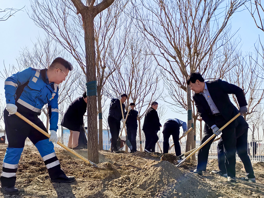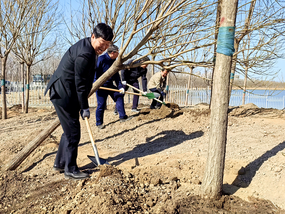 東湖風(fēng)景區位于綠色生態(tài)屏障區內,風(fēng)景區內湖面蕩漾,林水相依,草長(cháng)鶯飛,成為市民游憩休閑、親近自然的好去處。趙飛、賈堤、李春、李大勇、劉偉、崔洪金等來(lái)到這里,拿起鐵鍬來(lái)到植樹(shù)區域,揮鍬鏟土、培土圍堰、提桶澆水,種下北京欒、旱柳等苗木。新種下的樹(shù)木迎風(fēng)挺立,一排排矗立在岸邊,枝條在春風(fēng)的吹拂下輕輕搖曳,充滿(mǎn)勃勃生機。