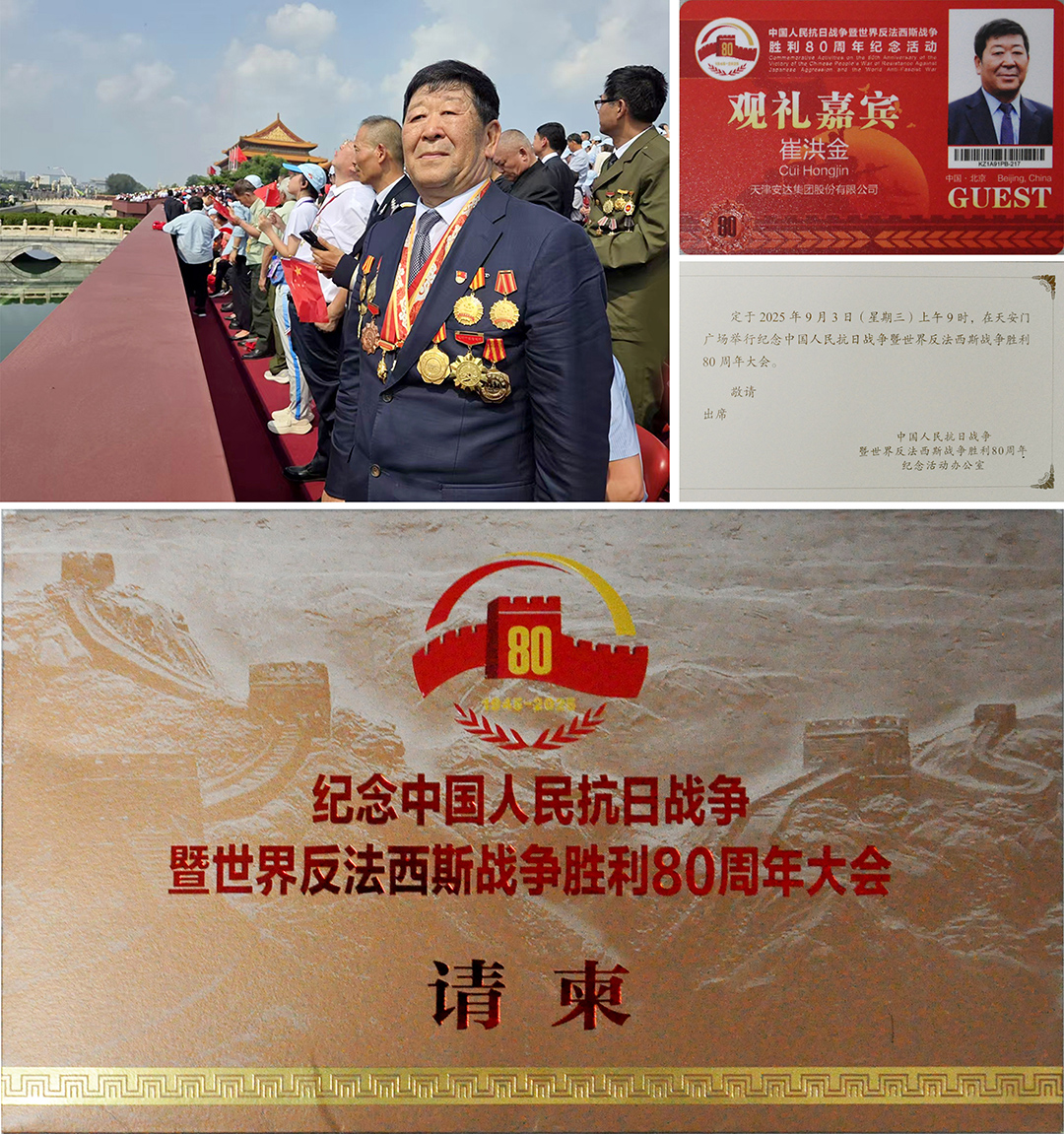 2025 年 9 月 3 日,天安門(mén)廣場(chǎng)旌旗獵獵、號角嘹亮,中國人民抗日戰爭暨世界反法西斯戰爭勝利 80 周年閱兵式在此隆重舉行。安達集團黨委書(shū)記、董事長(cháng)崔洪金作為全國最美擁軍人物代表受邀出席,在現場(chǎng)見(jiàn)證這一彰顯國威軍威的歷史性時(shí)刻。