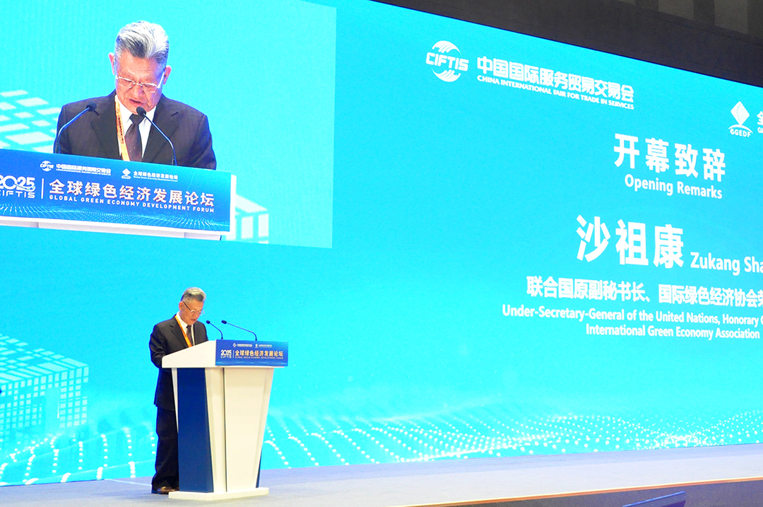 本次論壇以 “共筑 SDGs— 綠色經(jīng)濟創(chuàng )新與全球合作” 為主題,匯聚了聯(lián)合國及歐盟委員會(huì )官員、多國駐華使節、中央部委專(zhuān)家、地方政府代表、中外專(zhuān)家學(xué)者和綠色低碳行業(yè)企業(yè)代表等 300 余人。聯(lián)合國原副秘書(shū)長(cháng)、國際綠色經(jīng)濟協(xié)會(huì )榮譽(yù)主席沙祖康為開(kāi)幕式致辭,強調了開(kāi)展綠色經(jīng)濟創(chuàng )新與全球合作對于推動(dòng)實(shí)現 SDGs 的重要性。