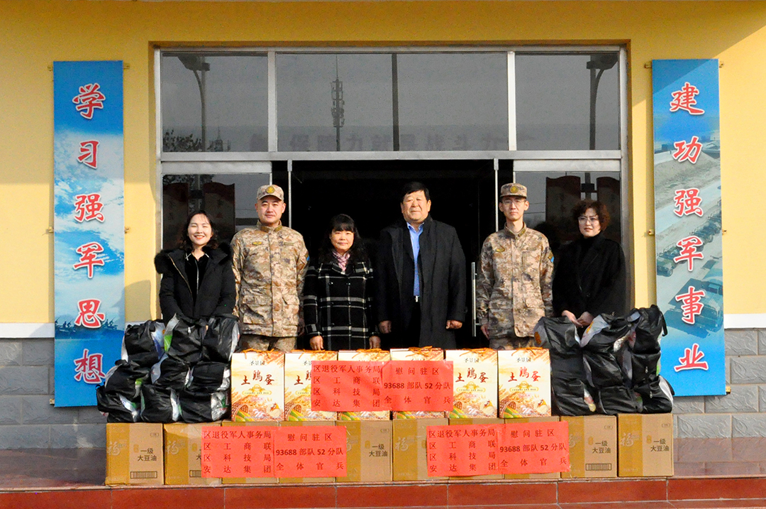 春節前夕,年味漸濃,關(guān)懷暖心。近日,全國最美擁軍人物、天津安達集團黨委書(shū)記、董事長(cháng)崔洪金帶隊,聯(lián)合東麗區退役軍人事務(wù)局、區工商聯(lián)、區科技局相關(guān)領(lǐng)導,分別前往駐區93688部隊52分隊和62分隊開(kāi)展新春慰問(wèn)活動(dòng),向部隊官兵致以崇高敬意和誠摯的新春祝福,并為他們送去各類(lèi)生活必需品,用實(shí)際行動(dòng)續寫(xiě)軍民魚(yú)水深情。
