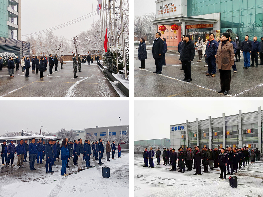 在集團黨委書(shū)記、董事長(cháng)崔洪金的帶領(lǐng)下,總部員工整齊列隊,冒雪站立于廣場(chǎng)上。雪花紛飛中,全體人員肅立靜穆,目光堅定注視著(zhù)五星紅旗,伴隨激昂的《義勇軍進(jìn)行曲》冉冉升起、獵獵作響。各分公司員工同步完成升旗儀式,雪粒沾濕衣肩仍身姿挺拔,用行動(dòng)詮釋對祖國的赤誠。