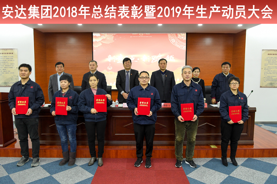 2019年1月12日上午,時(shí)值安達集團成立31周年的喜慶節日,集團六層道德講堂張燈結彩、士氣高昂,安達集團2018年度工作總結表彰暨2019年度生產(chǎn)動(dòng)員大會(huì )在這里勝利召開(kāi)。安達集團黨委書(shū)記董事長(cháng)崔洪金、東麗區工商聯(lián)黨組副書(shū)記劉樹(shù)義、豐年村街道黨委書(shū)記胡德方、區總工會(huì )副主席劉立煥及集團各分公司相關(guān)領(lǐng)導、優(yōu)秀員工代表齊聚一堂,大會(huì )以“新起點(diǎn)、新跨越”為主題,共同回顧了2018年度安達集團的全面工作和所取得的成績(jì),并就工作中所涌現出的先進(jìn)集體、個(gè)人進(jìn)行了表彰,同時(shí)部署了新一年的工作方向和任務(wù),并結合當前政策、經(jīng)濟形勢對集團的發(fā)展做出了規劃和展望。會(huì )議由安達集團黨委辦公室主任曹永海主持,工會(huì )主席鄭寶彥宣讀獲獎名單。