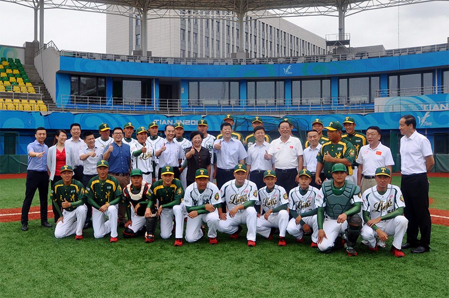 安達集團黨委書(shū)記董事長(cháng)崔洪金及市區相關(guān)領(lǐng)導與天津安達雄獅棒球隊合影留念